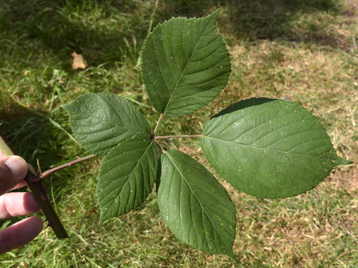 A freshly cut specimen of a stem piece taken from moderate shade - the leaflets are fairly thin, relatively large, not pleated and only thinly felted beneath. The terminal leaflet is convex.